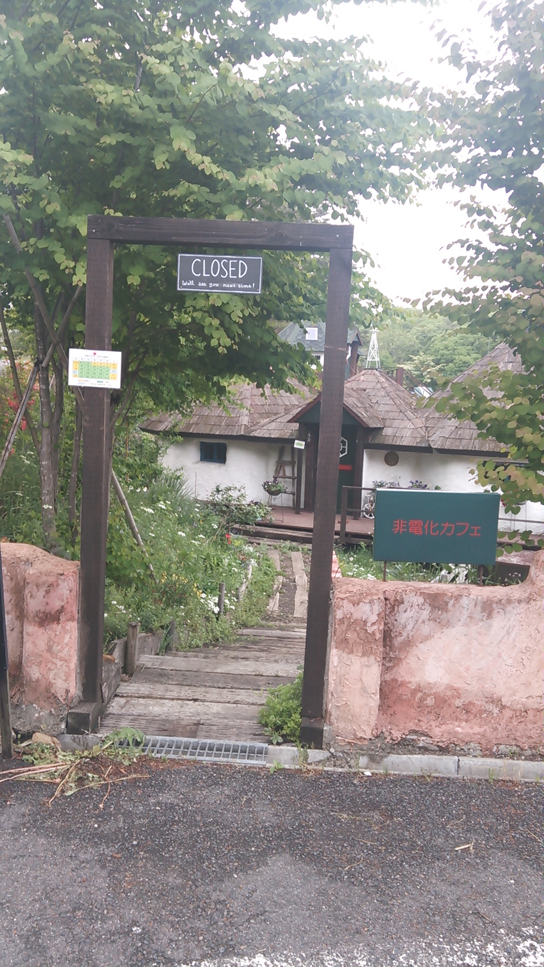 高架ををくぐった20m先に非電化カフェの看板があり、右折。