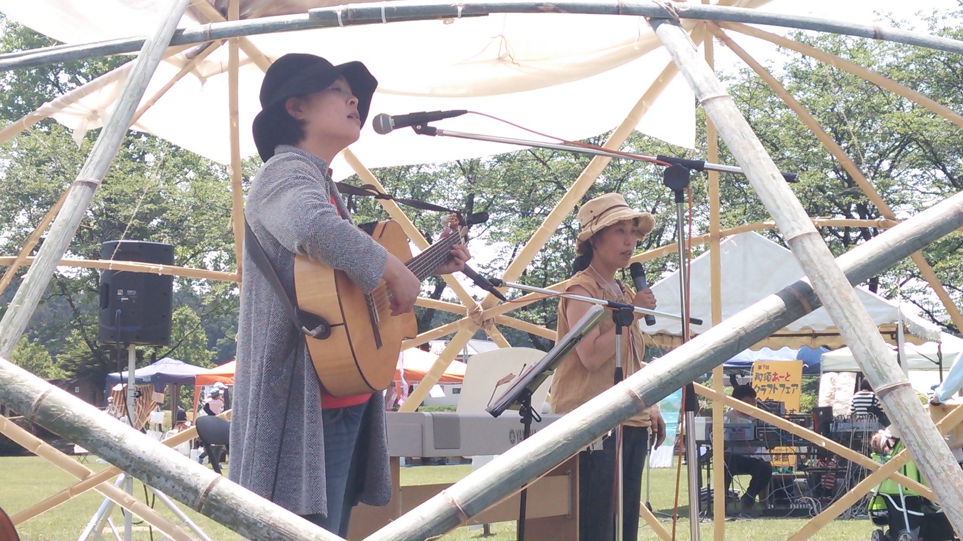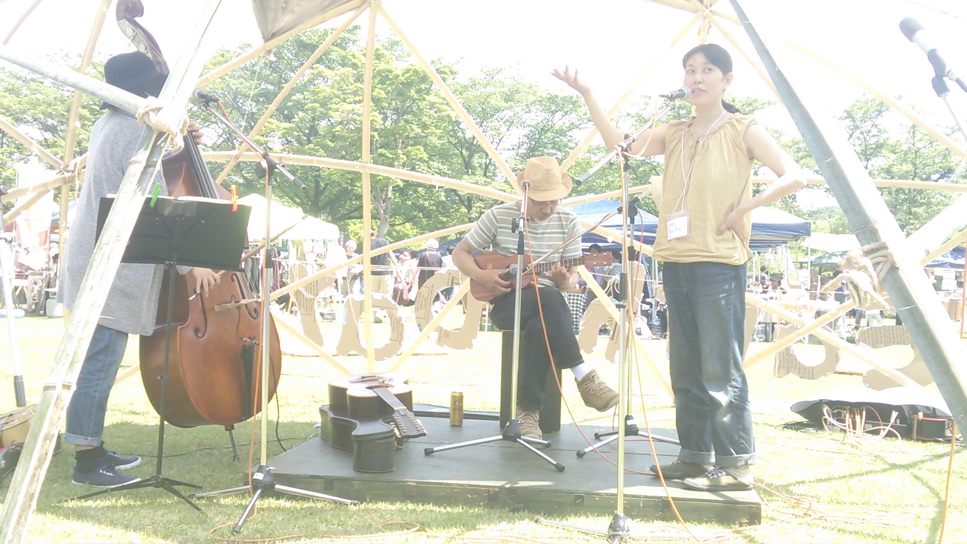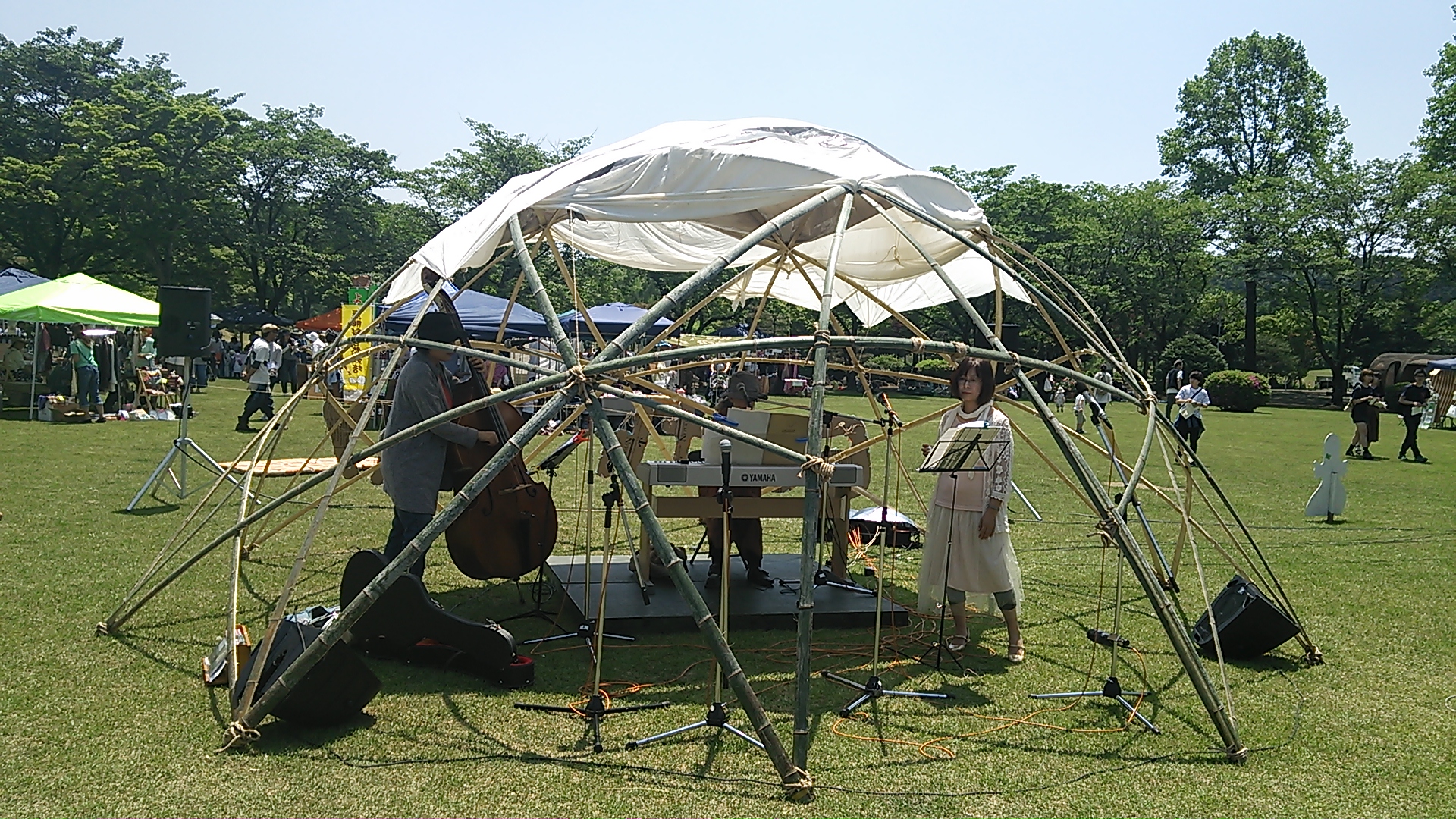 今年のステージはバンブーステージで、手作りで移動可能な便利な物でした。