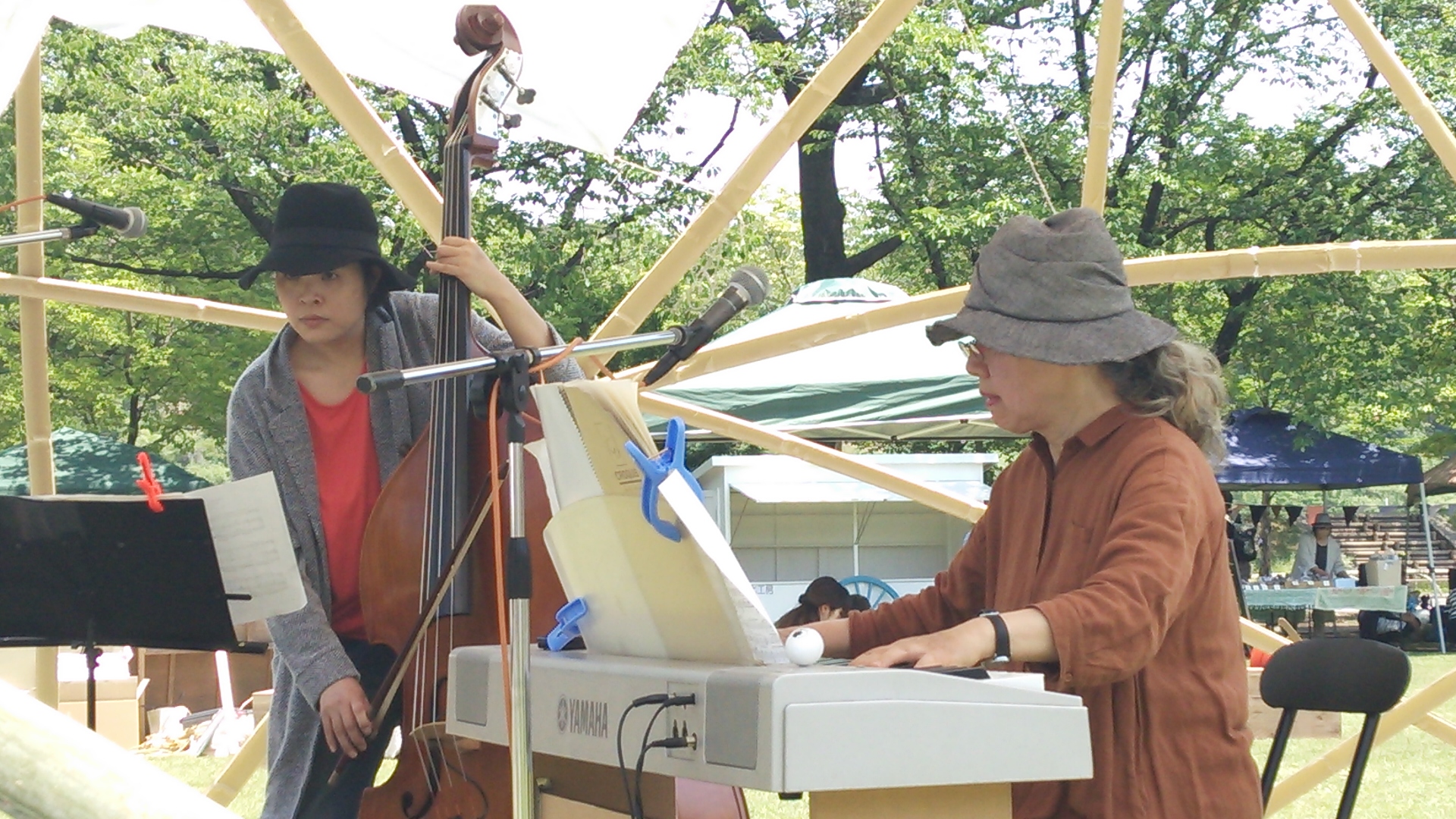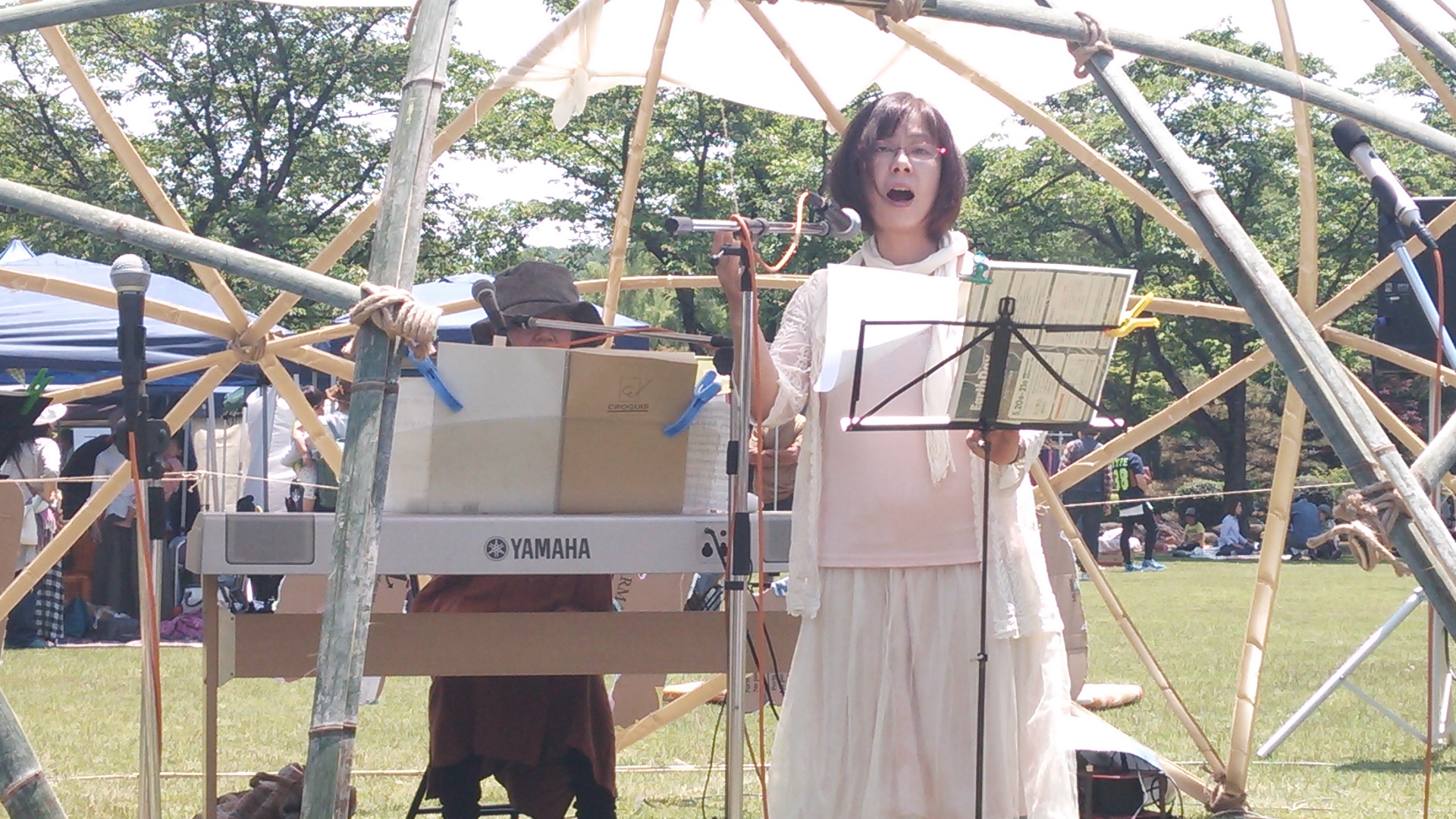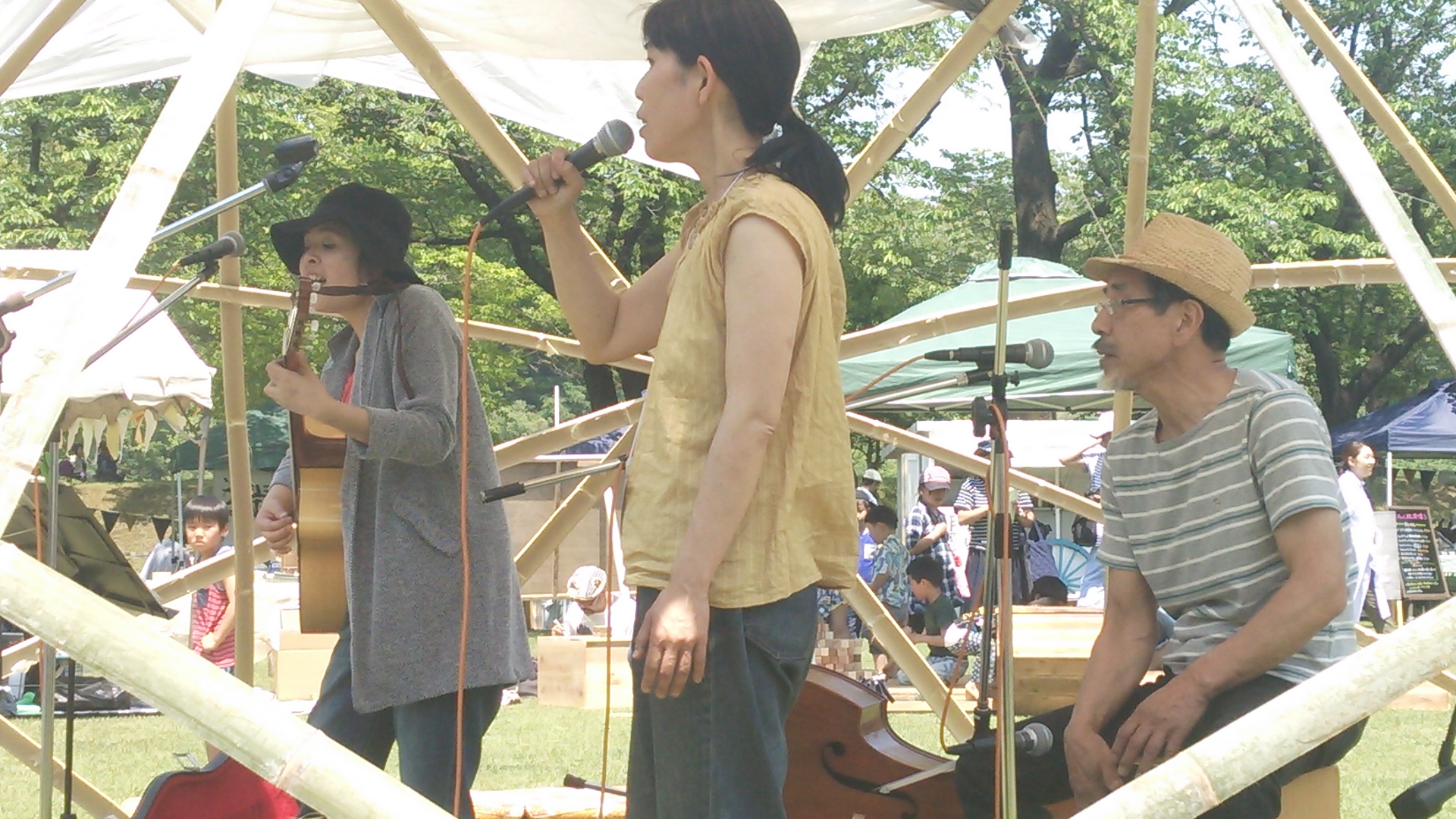 今年のステージはバンブーステージで、手作りで移動可能な便利な物でした。