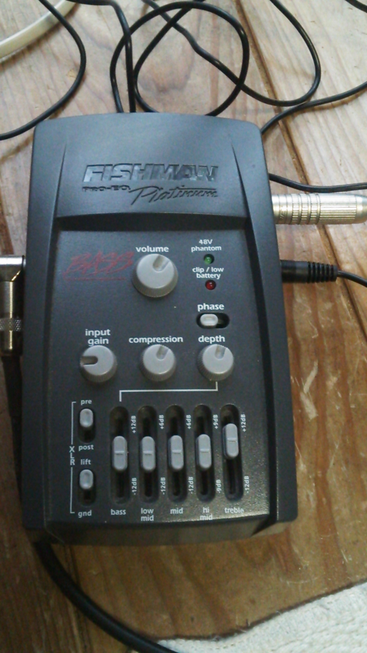 弁当箱のようなこの物体は、ウッドベース用のプリアンプ。