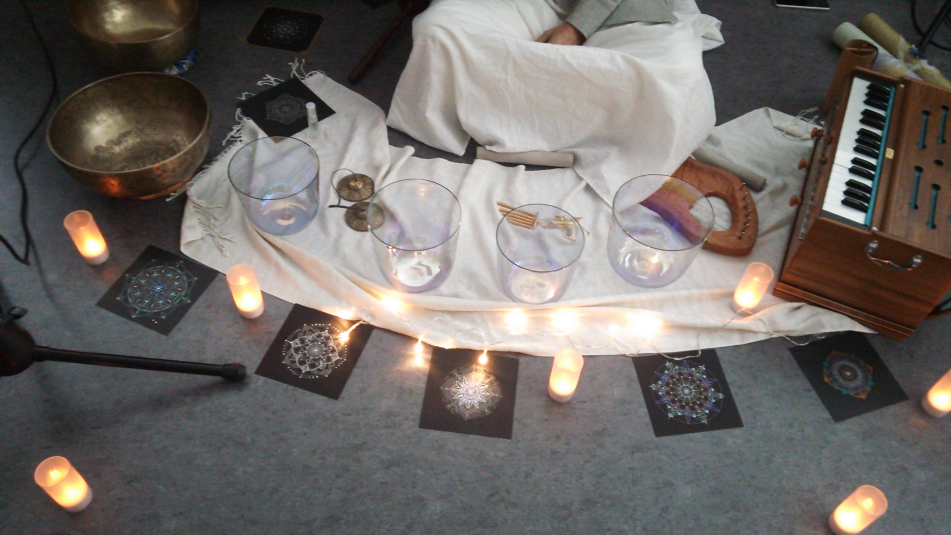 倍音たっぷりのヒーリング楽器(クリスタルボウル、シンギングボウル etc)と声と共に、