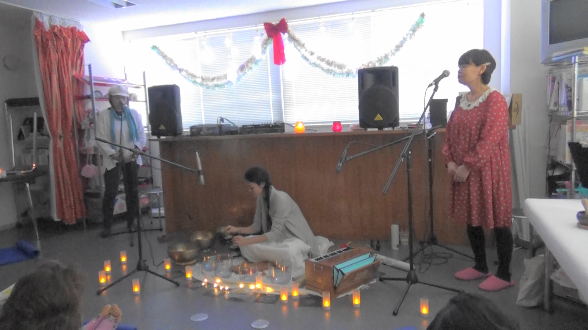 ヨガマットを敷いての倍音浴ライブ、キャンドルを灯して。。。。