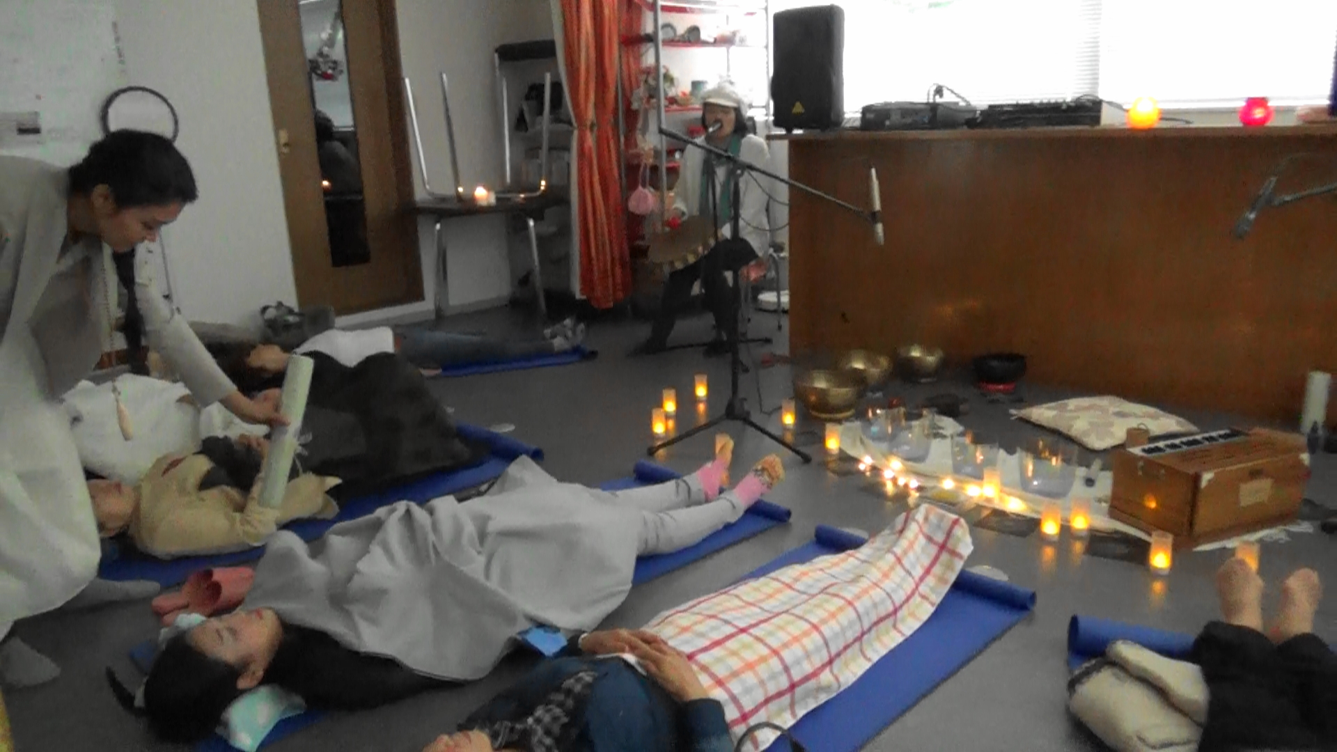 寝そべりながら聴いて頂いたクリスタルボウル、