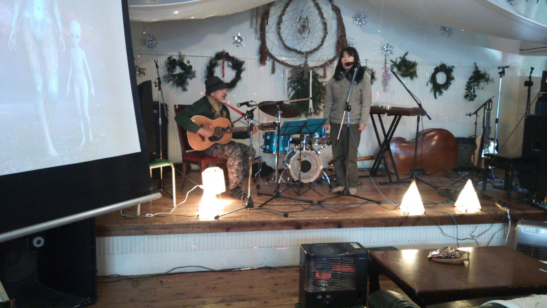 ゆるい笑いと純粋な歌の二人のバイブレーションで、皆で演奏して最後は盛り上がる!